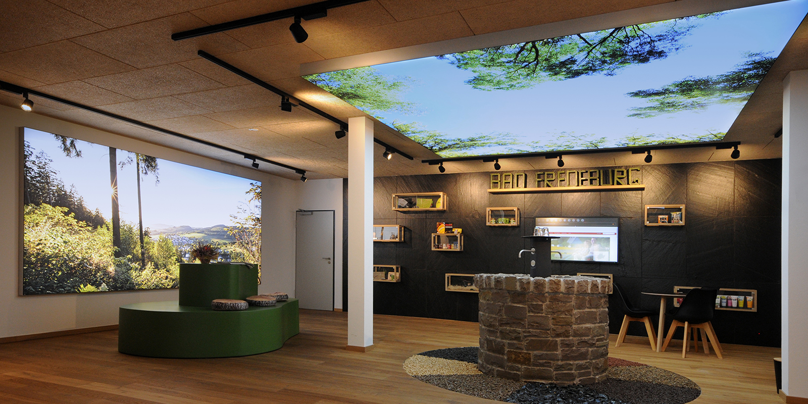 Unser mehrfach ausgezeichnetes Rahmensystem ALUFRAME bildet die Basis für stylische Raumgestaltung. Das System besteht aus Aluminiumprofilen, in die auswechselbare Textildrucke eingespannt werden. Es kann mit Akustikelementen, Digital-Signage, Licht-, Klima- und Klangfunktionen modular ergänzt werden. Bringen Sie mit ALUFRAME Farbe in Ihre Räume!