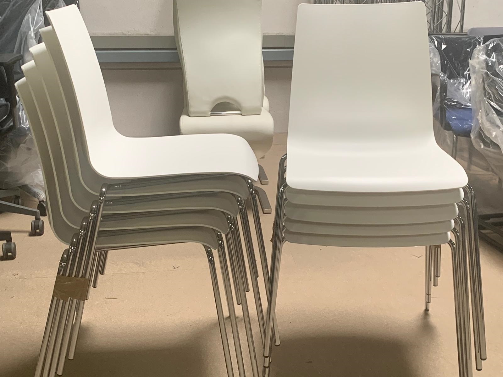 10 x Stapelstühle Weiß mit Kunststoff Schale.