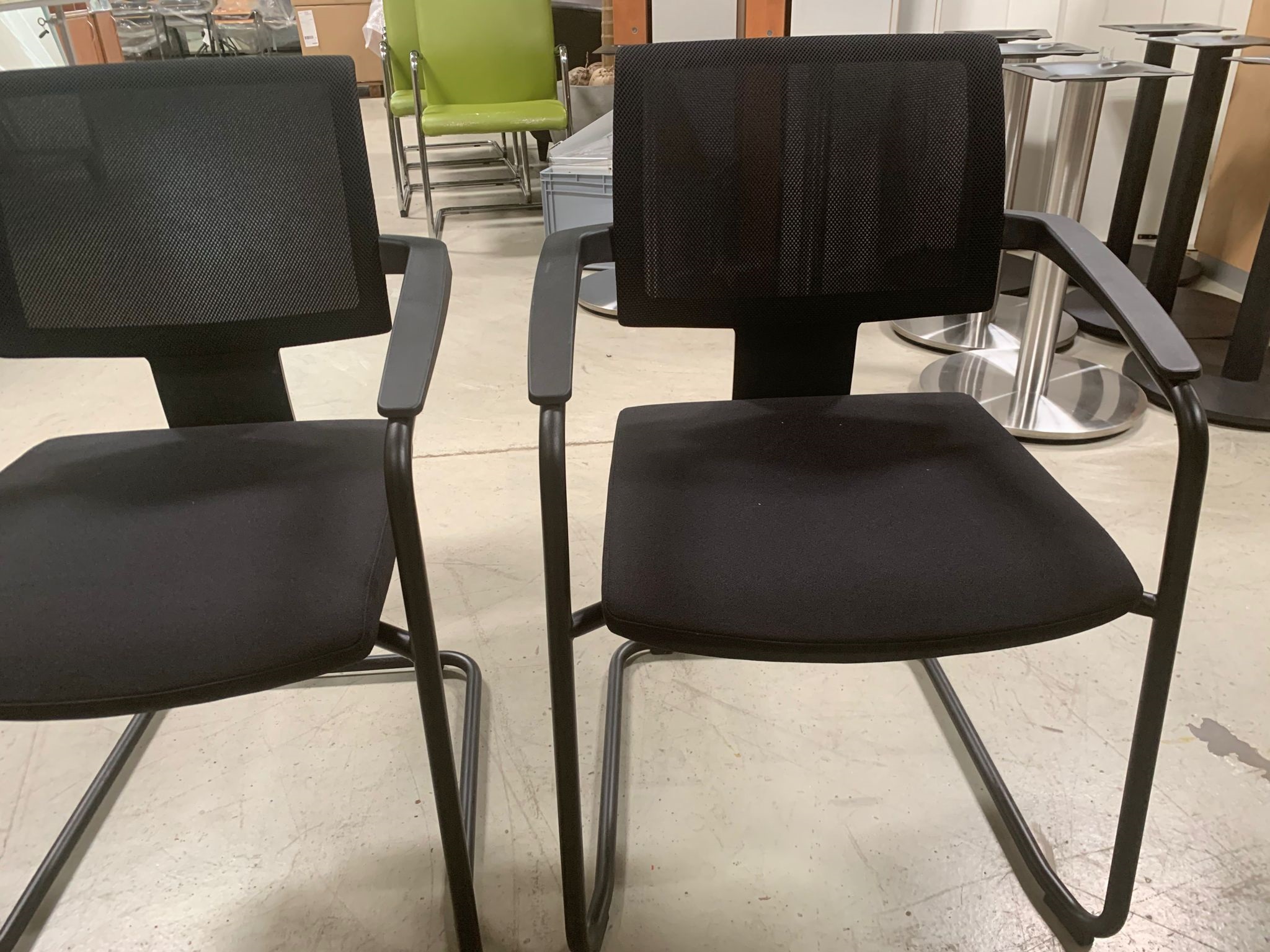 Besucher stuhl mit schwarzem Bezugsstoff und Netz rücken.