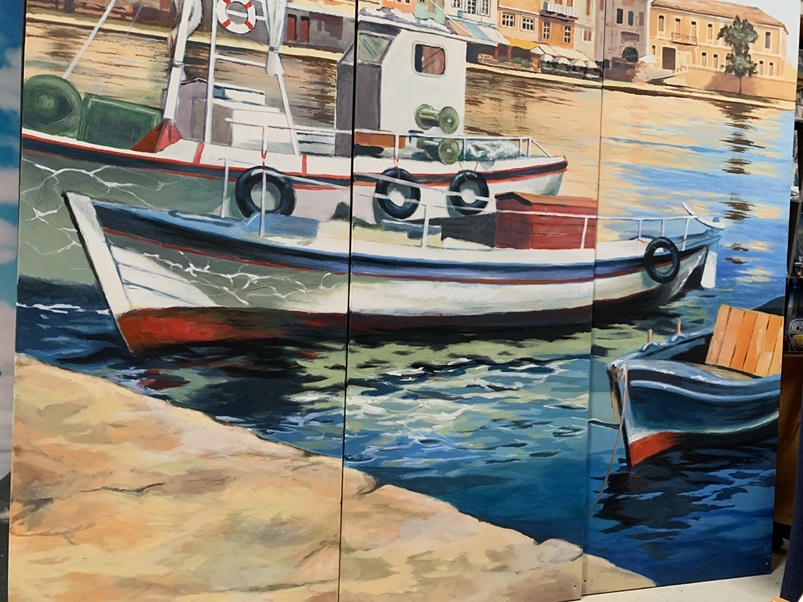 3 teiliges Acrylbild eines Bühnenmalers für Luthe Ladenbau auf Holzrahmen mit Leine bespannt .