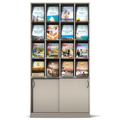 in Front wahlweise mit Katalogklappe zur Aufnahme eines ganzen Katalogs oder Zeitschrift