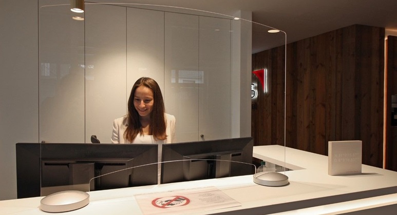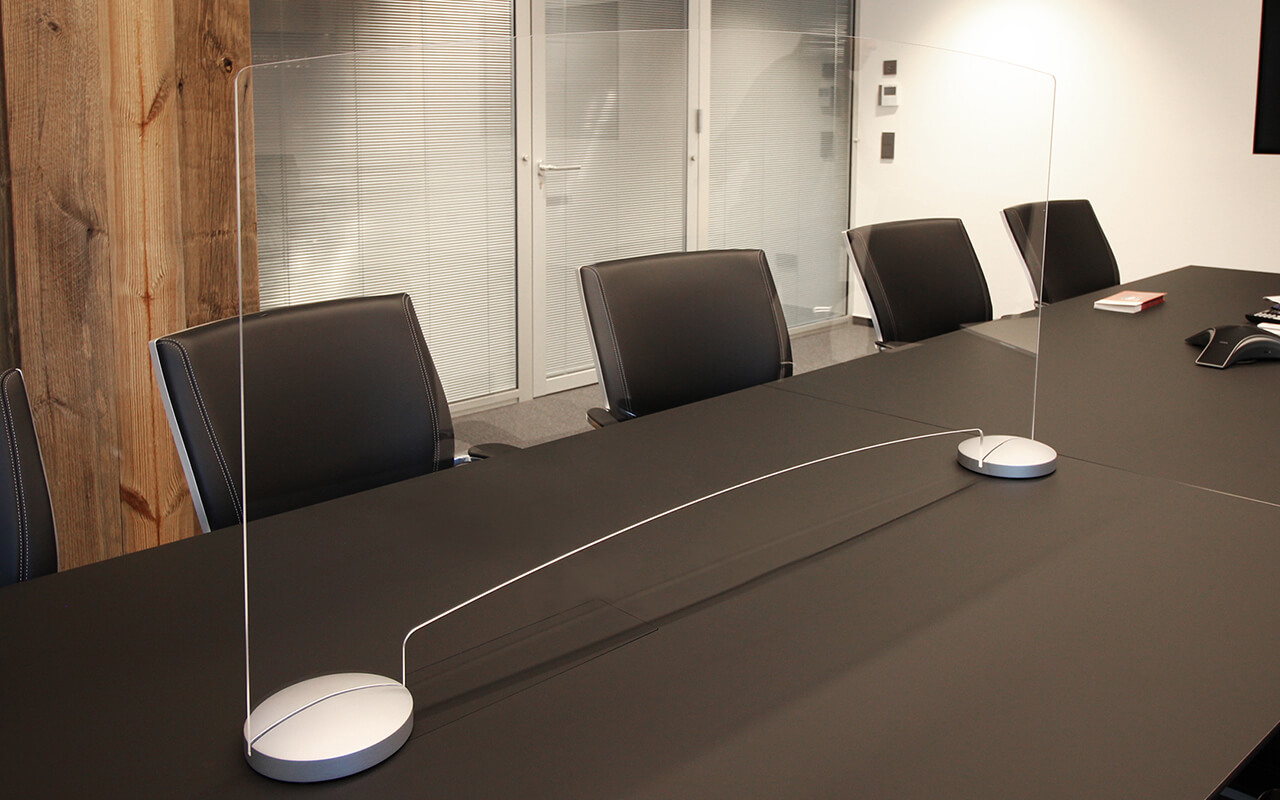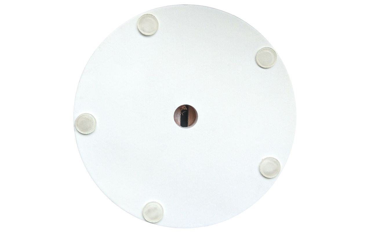 Acryltopper "Care", 500 | 600 mm Höhe, aus Acrylglas 5 mm, mit Durchreiche. Inkl. 2 Design-Holzfüße Buche natur lackiert, ø 140 x H 37 mm, mit Schlitz, 15 mm Bohrung und 5 aufgeklebten Gumminoppen an der Unterseite.