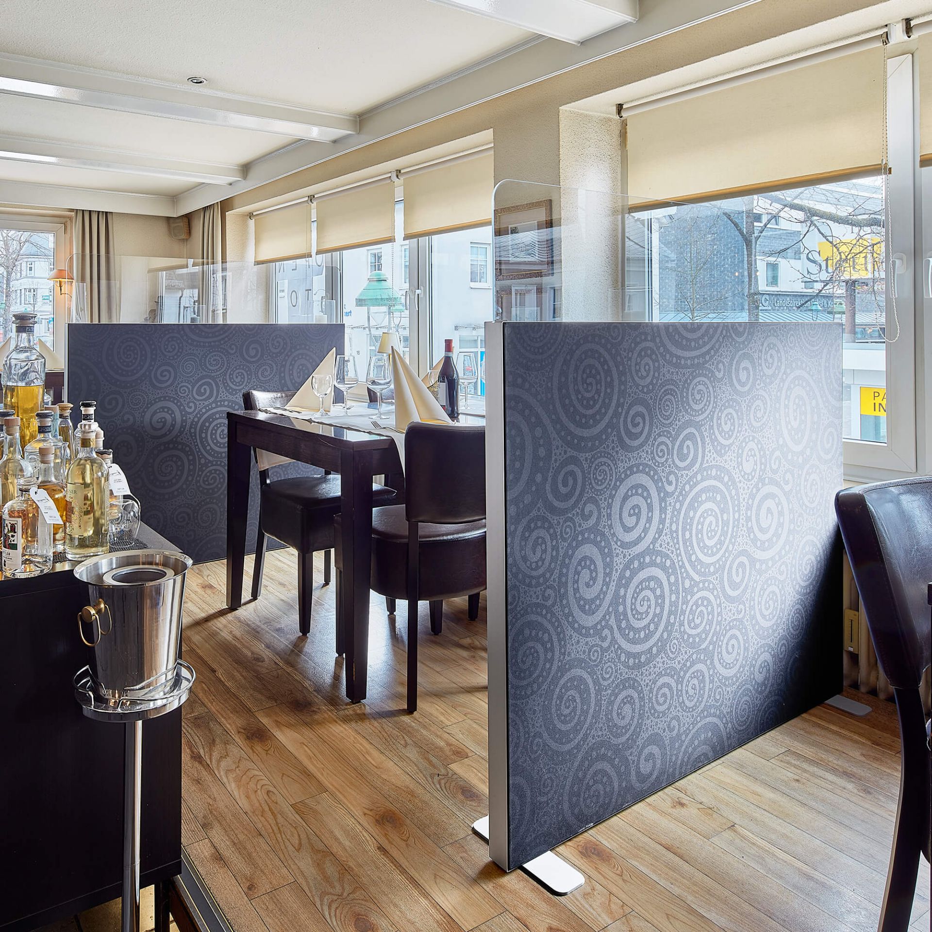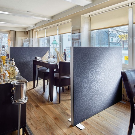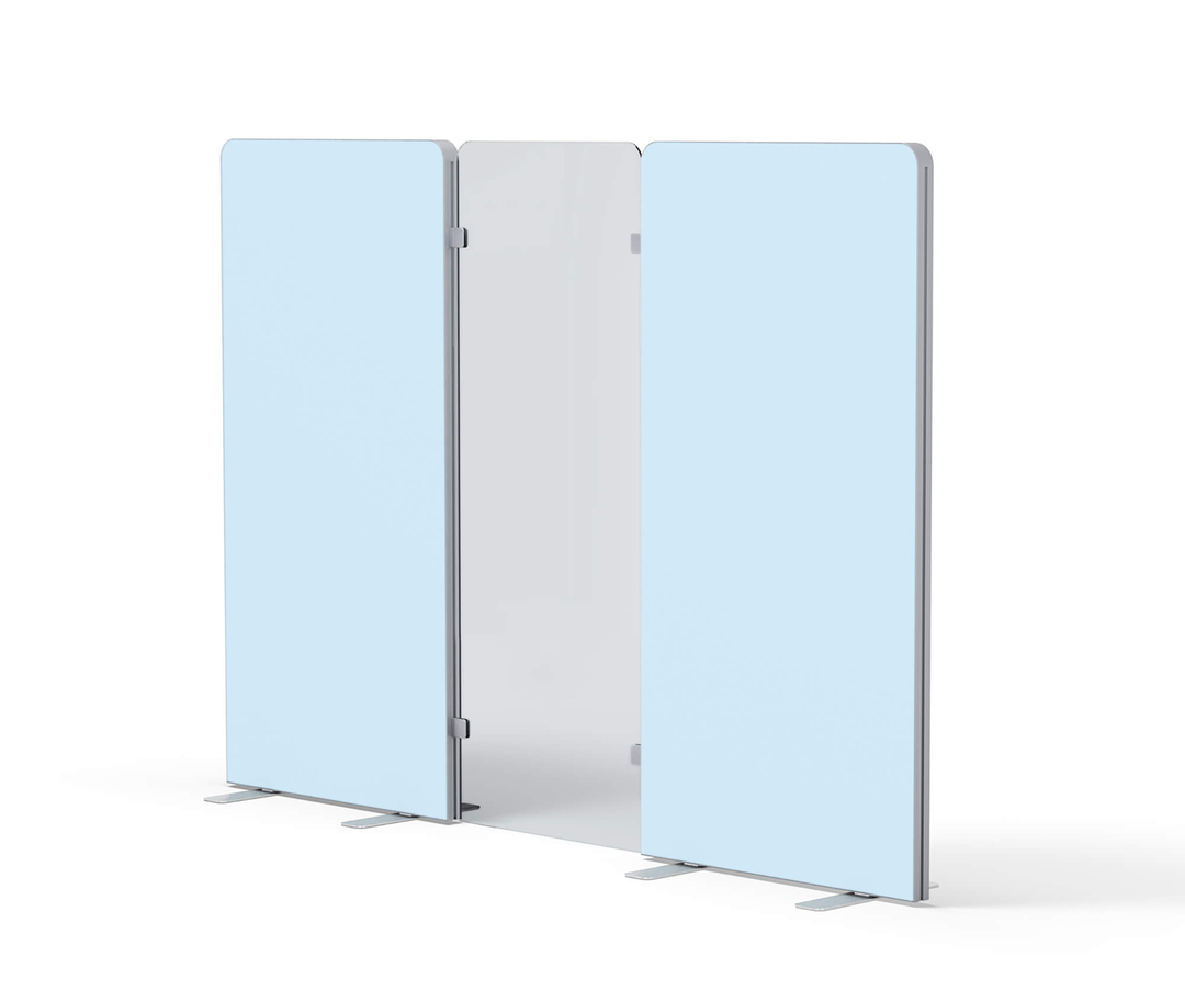 Das individuell gestaltbare, flexible Trennwandsystem "BASIC" schafft in viel frequentierten Räumen abgegrenzte Zonen und sorgt für den nötigen Abstand und Wohlfühlatmosphäre. Die Einsatzmöglichkeiten sind vielfältig – vom Büro über Praxis und Klinik bis zur Beratungs- oder Verkaufsflächen. Die Trennwände können mit Scharnieren ausgestattet werden und als flexible Paravents genutzt werden.